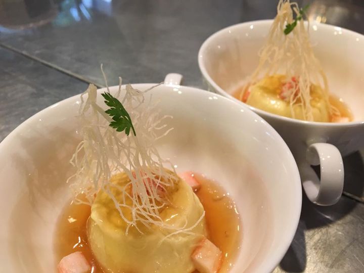 甘〜いトウモロコシのムース コンソメゼリーとズワイ蟹。